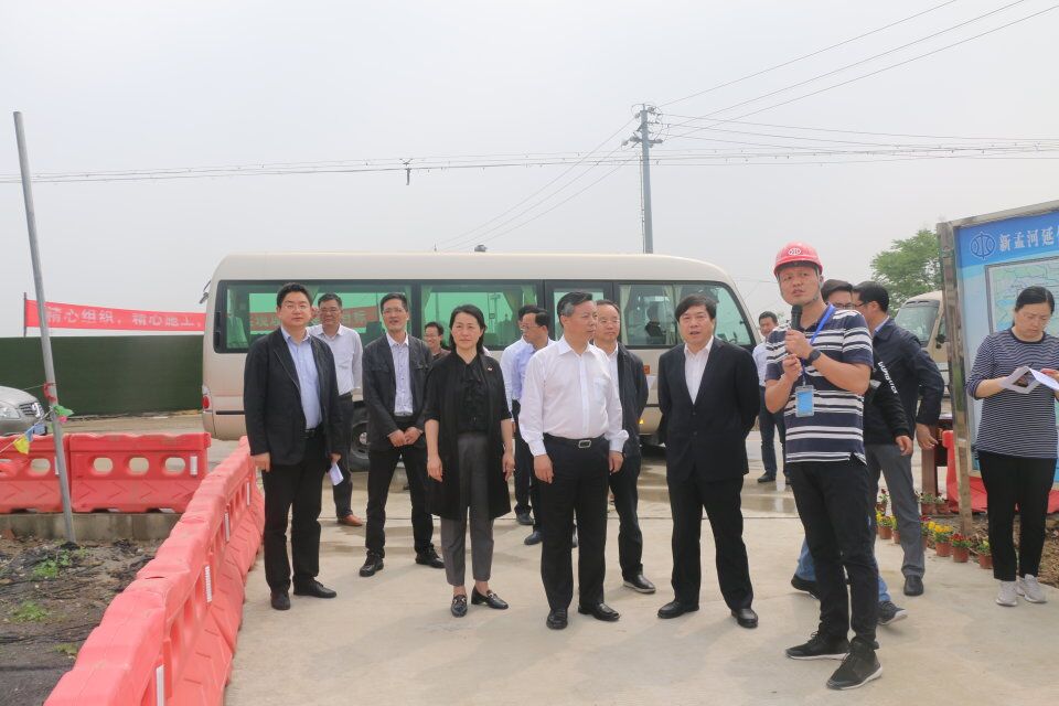 4月30日,常州市市委常委、常務副市長、新孟河市級河長曹佳中帶領常州市水利、環保、住建、農業、河長辦等部門領導視察我公司承建的武進區新孟河延伸拓浚工程南延段1標工程。武進區區長、區總河長戴士福,區水利局局長、河長辦主任劉建榮陪同檢查。